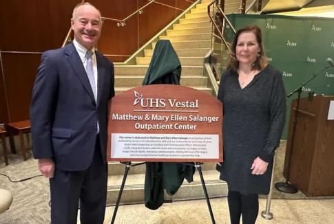 The UHS Vestal Matthew & Mary Ellen Salanger Outpatient Center has been dedicated at 4417 Vestal Parkway East. The dedication is in recognition of Mr. and Mrs. Salanger’s outstanding service and contributions to UHS and the community for more than 35 years and in honor of a generous donation to the UHS Foundation provided this year by the Salangers.