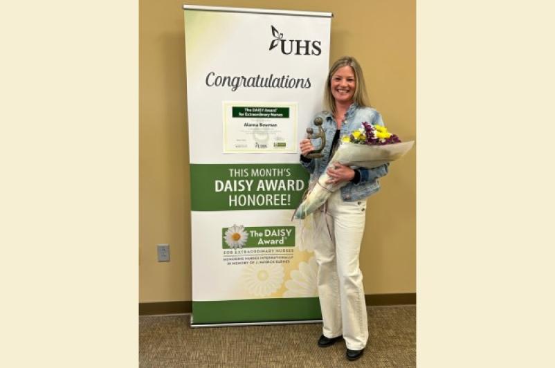 A program to recognize the care and compassion of extraordinary nurses continues at UHS with Alanna Bowman, RN, Care Manager, UHS Home Care, being named the March winner of the DAISY Award! Alanna was recognized and presented with the award for the achievement and enjoyed cinnamon rolls, a symbolic treat in honor of Patrick Barnes, whose experience inspired the award.