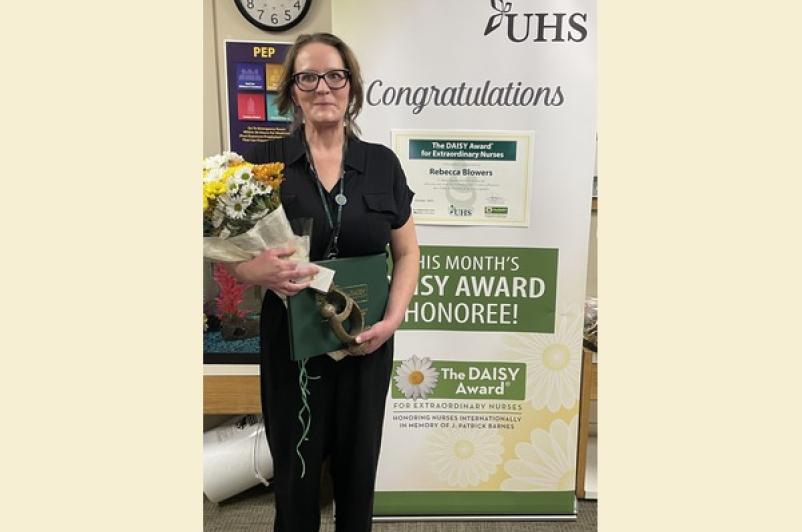 A program to recognize the care and compassion of extraordinary nurses continues at UHS with Rebecca Blowers, RN, New Horizons Outpatient, UHS Binghamton General Hospital, being named the October winner of the DAISY Award! Rebecca was recognized and presented with the award for the achievement and enjoyed cinnamon rolls, a symbolic treat in honor of Patrick Barnes, whose experience inspired the award.