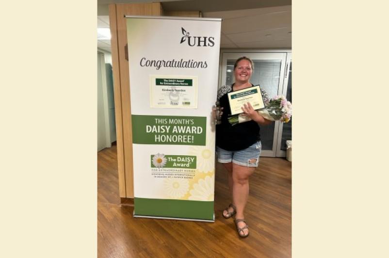 A program to recognize the care and compassion of extraordinary nurses continues at UHS with Kimberly Reardon, BSN, RN, UHS Wilson Medical Center Intensive Care Unit (ICU), being named the May winner of the DAISY Award! Kimberly was recognized and presented with the award for the achievement and enjoyed cinnamon rolls, a symbolic treat in honor of Patrick Barnes, whose experience inspired the award.