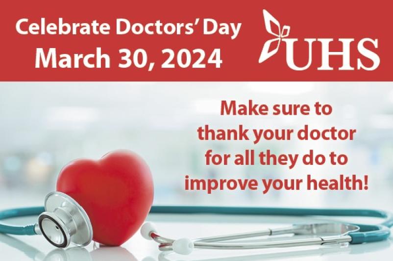 March 30 is National Doctors’ Day, an annual observance aimed at appreciating physicians who help save and improve lives everywhere. UHS takes this opportunity to salute all of the members of our medical staff.