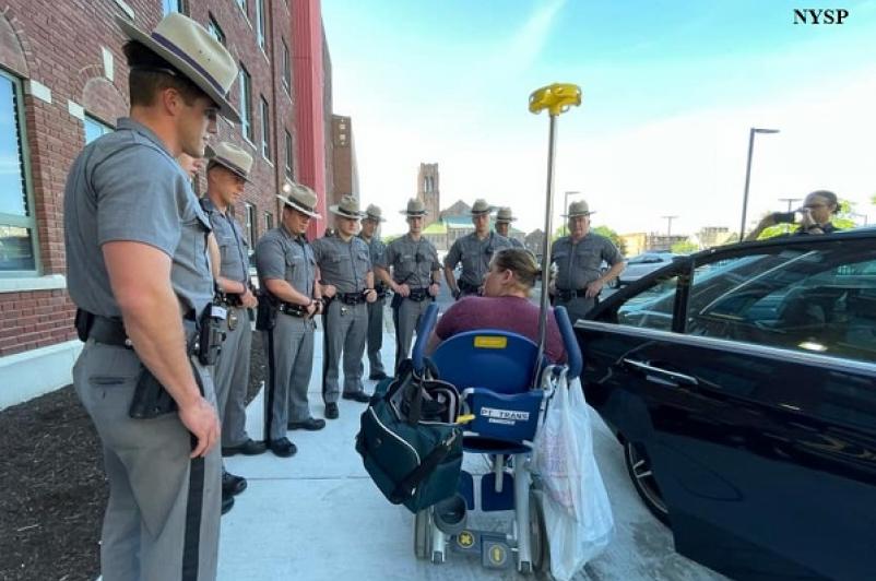 Many law enforcement members were at the hospital upon her release to greet and support her as she headed home.
