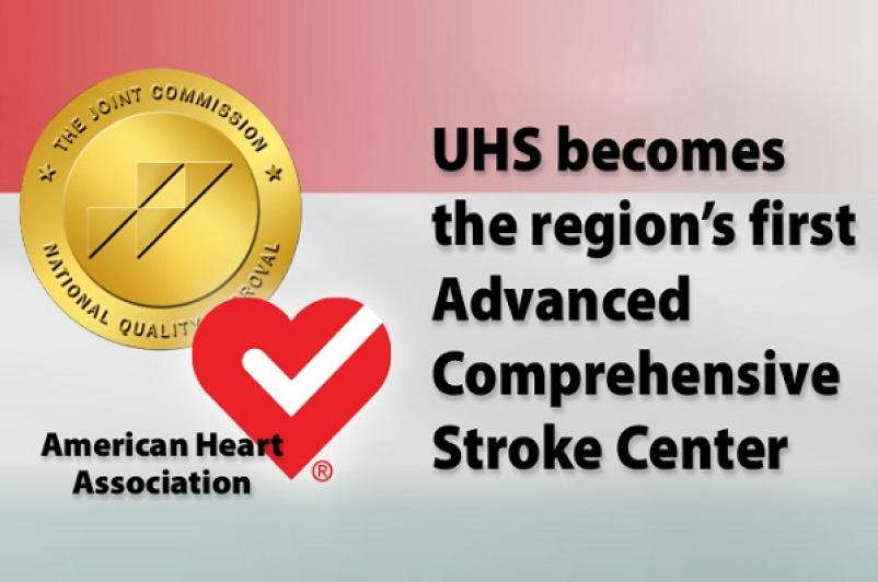 UHS underwent a rigorous assessment, during which a team of Joint Commission reviewers were on-site and evaluated compliance with certification standards, including 24/7 availability of an acute stroke team, comprehensive diagnostic testing services, experience providing the most complex stroke treatments and the 24/7 ability to meet the needs of two complex stroke patients at the same time. The Joint Commission standards are developed in consultation with healthcare experts and providers, measurement experts, and patients.