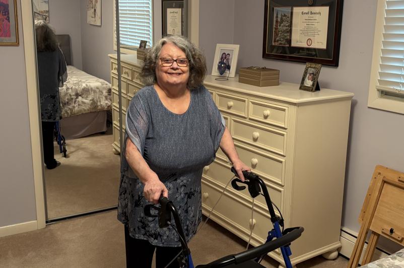 Ms. Cuneo, who lives with scoliosis and COPD, was provided a walker and oxygen tank from UHS Home Care. While the new equipment has helped improve her comfort and mobility at home, the real difference-maker has been the care she’s received from the UHS Home Care staff.