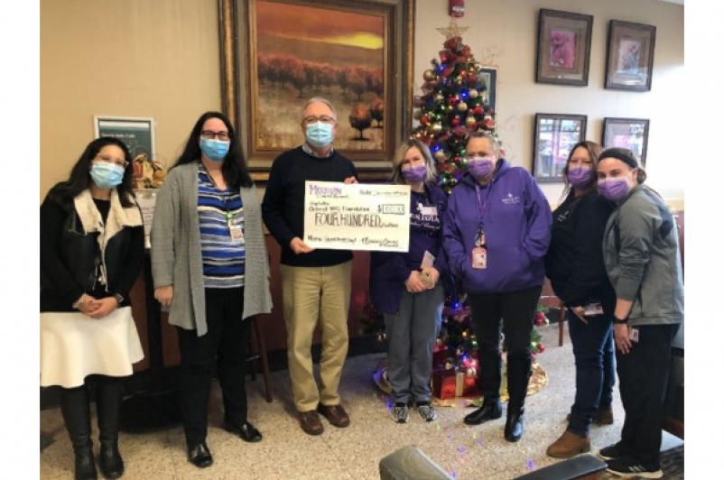 Representatives from Meridian Clinical Research presented John Carrigg, Beth Anne Kaplan & Jennifer Zeggert with a donation for the UHS Infusion Center as part of their Good Deeds Day outreach.
