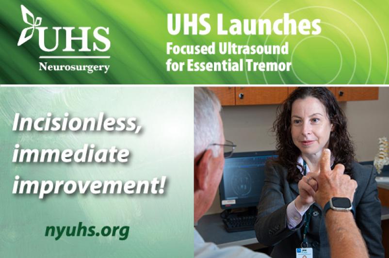 "Essential tremor can be an increasingly debilitating condition to live with, and I am pleased that UHS is able to bring focused ultrasound to patients in the region," said Simone Betchen, MD, MBA, FACS, FAANS, Chief of Neurosciences and attending neurosurgeon at UHS. “This minimally invasive treatment may offer immediate hand tremor improvement for patients and studies show that the improvement is sustained for years following treatment. This is an incredible opportunity to help people living with essential tremor regain control and improve their quality of life."