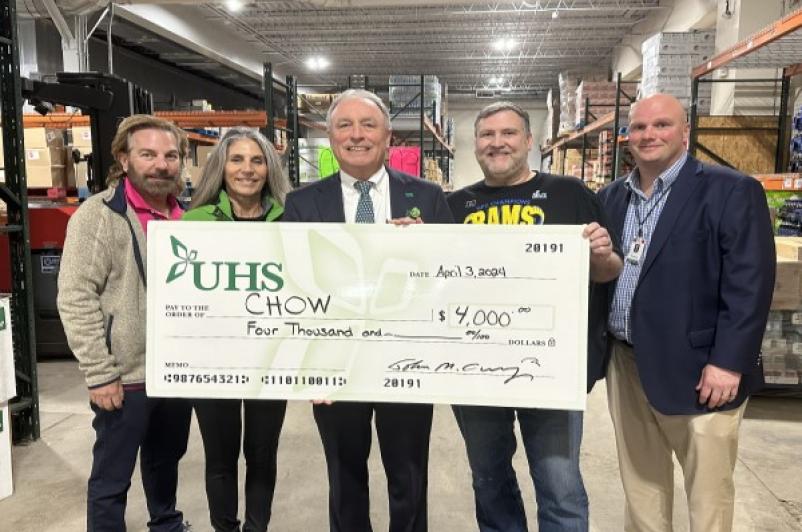 Thanks to the generosity of UHS employees, the recent CHOW food drive held in March at UHS will provide 20,000 meals to Southern Tier residents in need.
