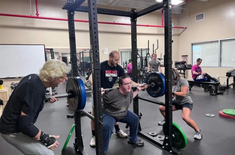 Twice a week from October to June, members of the Broome-Tioga Special Olympics powerlifting team train at UHS’ Vestal Sports Performance Gym. The athletes work with UHS’ experienced lifting coaches, some of whom have been lifting since they were teens themselves. The Gym’s Strength and Conditioning Coach Peter D’Aleo (also the head strength coach at UHS’ Newark Valley location) assists the team’s Head Coach Adrienne Mason and Assistant Coach David Laszewski in coaching the athletes, men and women ranging in age from their teens to their fifties.