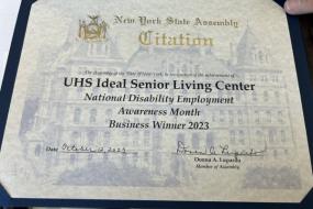NYS honors UHS Ideal for hiring those with disabilities In recognition of October as National Disability Employment Awareness Month, the New York State Education Department has honored UHS Senior Living at Ideal and 52 other busOct 13, 2023 -